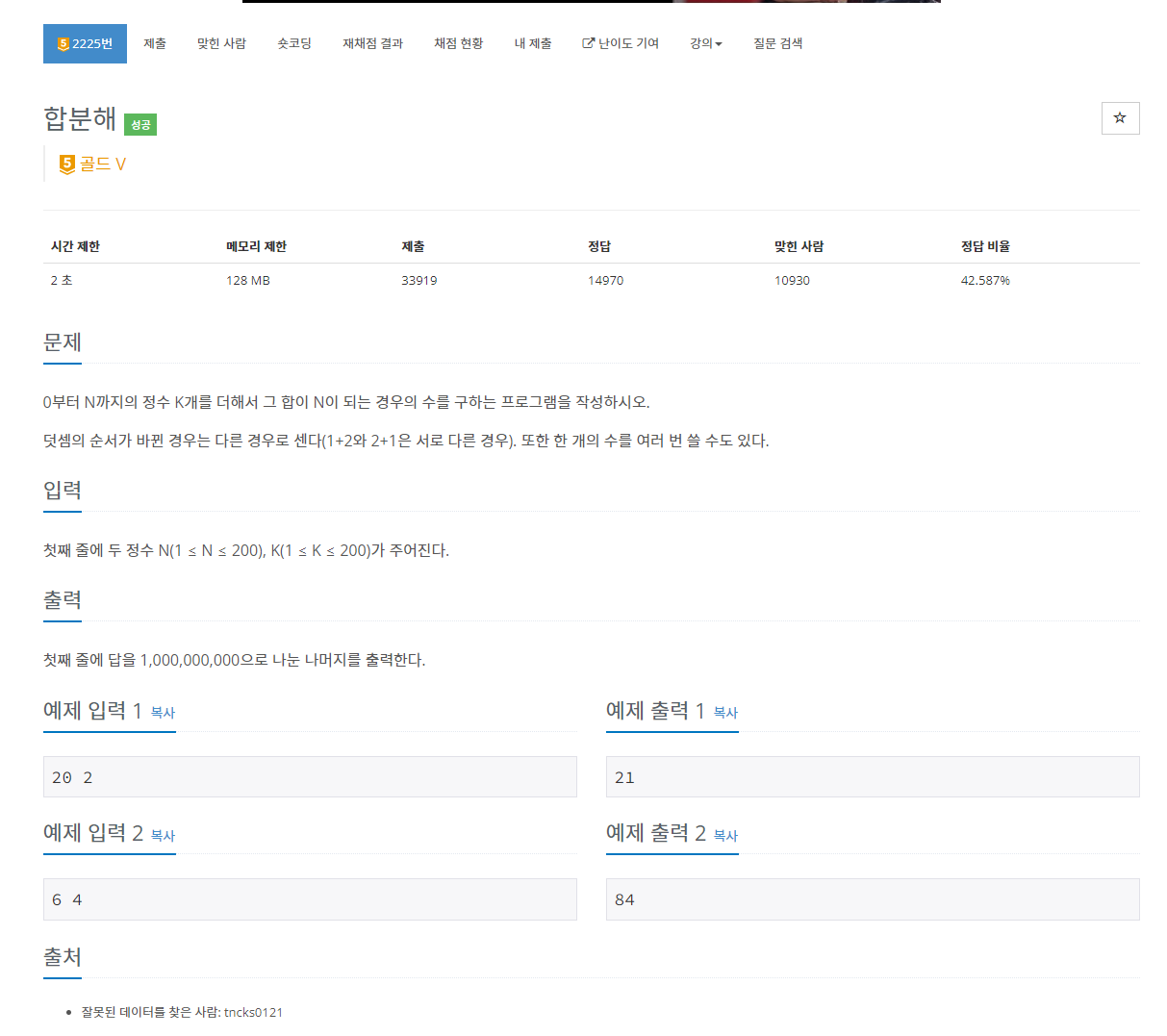 위의 점화식을 해석해보면 0~N 까지의 숫자 K 개로 N 을 만들때,