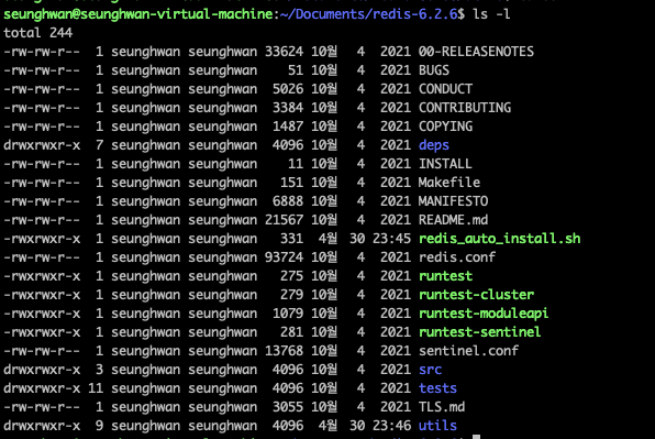 아래와 같이 관리자가 redis 자동설치 파일을 받아서 압축을 풀었다고 가정해 보자.