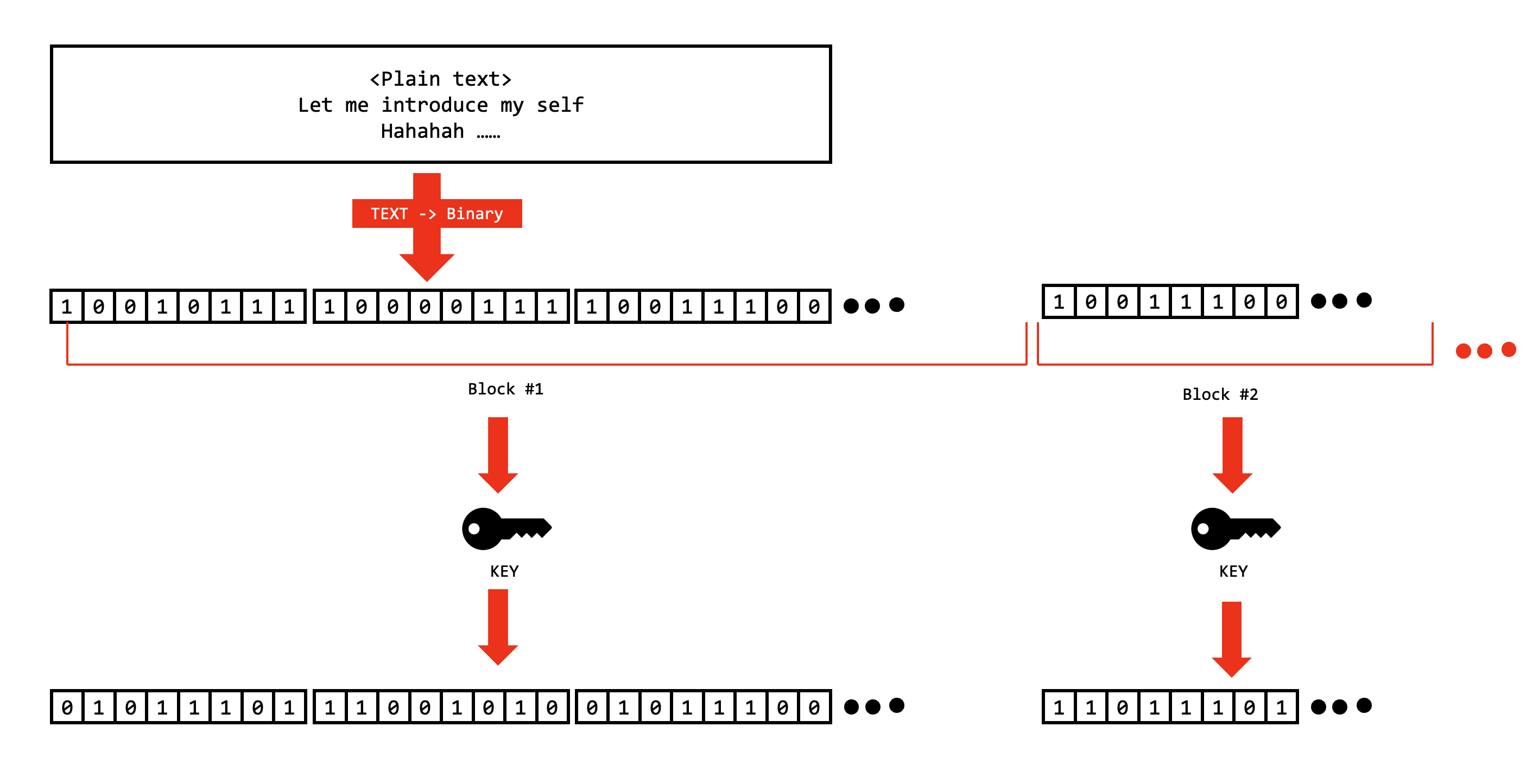 블록 암호란 평문을 일정한 크기의 블록으로 잘라낸 후 각 블록을 암호화하는 방식이다.