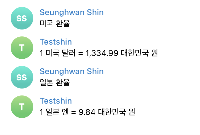 이번에는 Telegram Bot을 사용해서 환율 정보를 가져오는 코드를 구성해 보자.