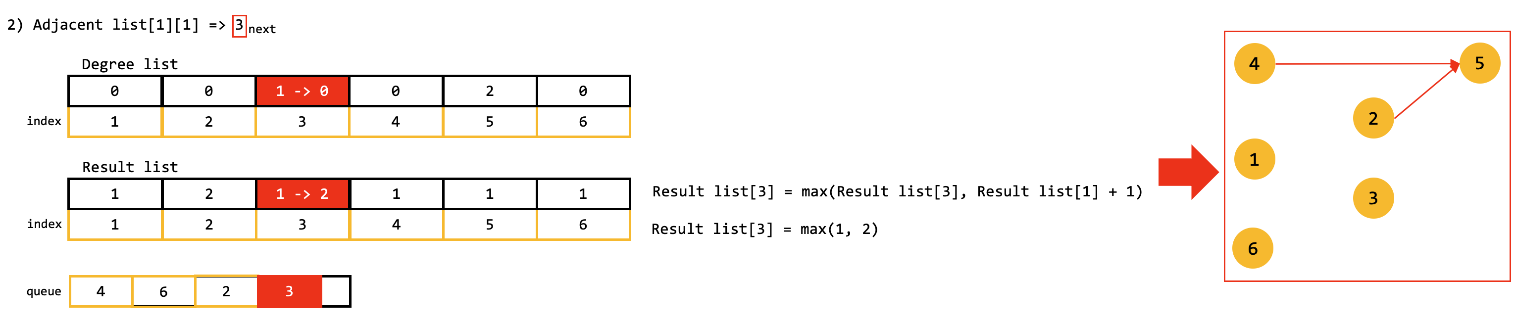 resultList[next] = Math.max(resultList[next], resultList[cur] + 1);
