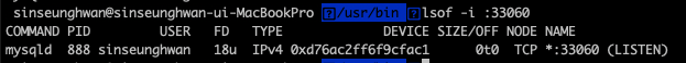 현재 mysql 은 정상적으로 3306 포트를 사용해서 실행되고 있는 모습을 볼 수 있다.